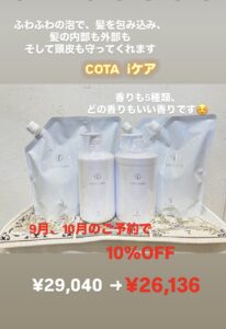 10パーセントオフで購入できるのは、9月・10月でご予約してくれたかたのみになります。