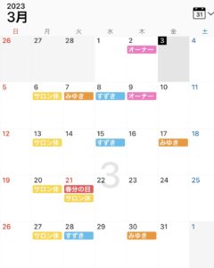 2023年4月より、サロン定休日が変わります。毎週月曜日は変わりませんが。