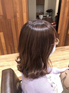 今年春の流行、大人な女性におすすめ、オレンジブラウンのカラーに、パーマをゆるくかけて、スパで頭皮もふんわり軽やかスタイルに🌸